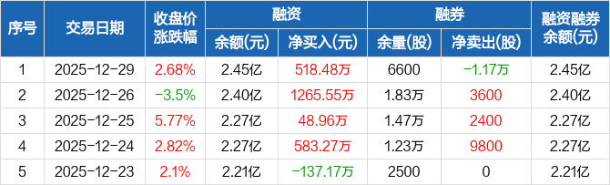 森特股份:连续4日融资净买入累计2416.26万元(12-29)