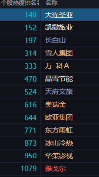 周日下午,整个冰雪板块的人气排名都在大幅度移动,搞得好像和今天的降温天气反着干一样!