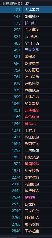 $长白山(SH603099)$ $大连圣亚(SH600593)$$天府文旅(SZ000558)$ $西域旅游(SZ300859)$