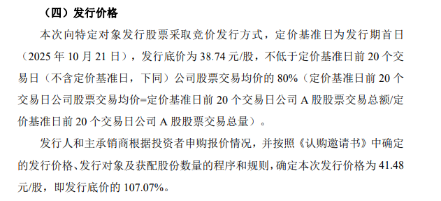 最终发行价,根据各项规则综合,就是用38.74*1.0707,结果是:41.478918元,四舍五入就是41.48元。这个定增的认购价就是这样一个计算过程!