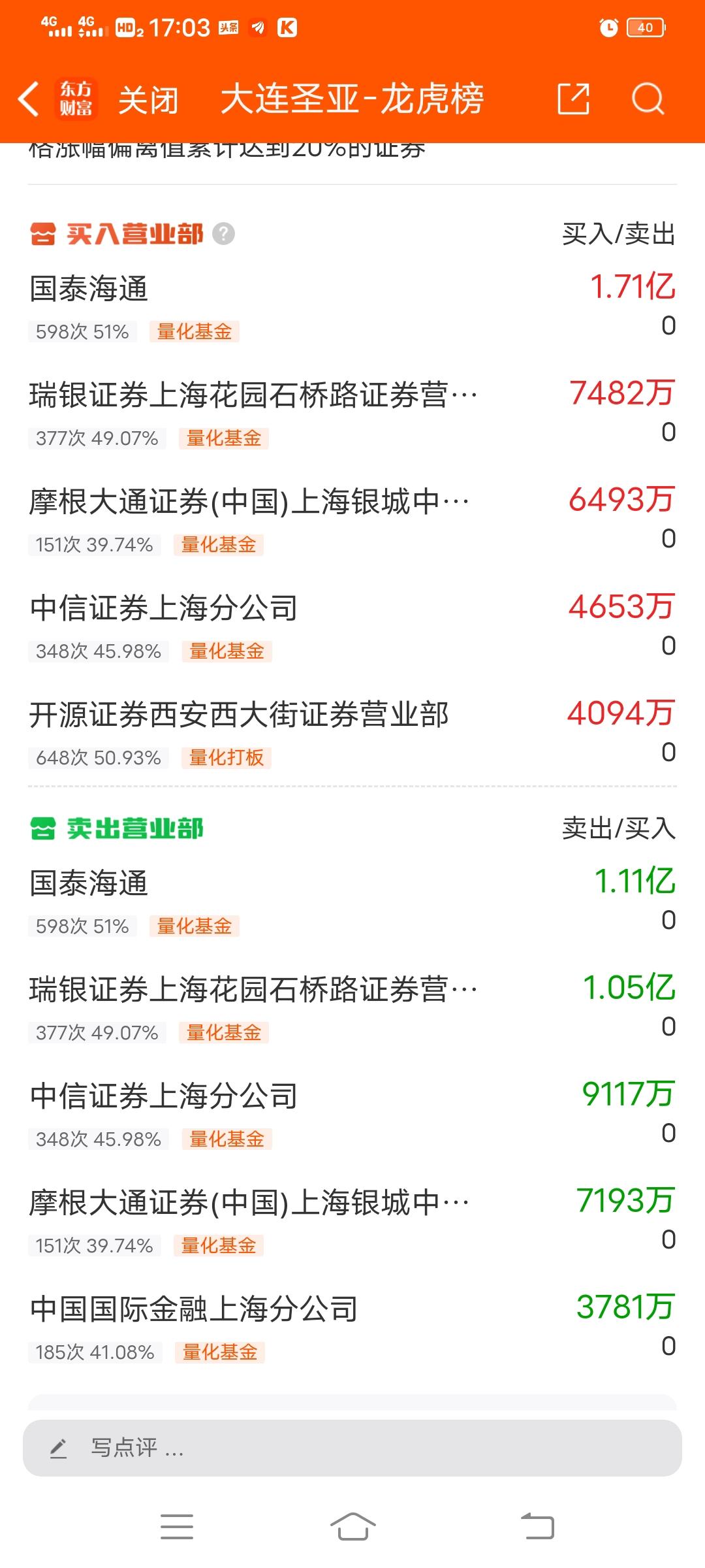 看看大连昨日的榜单,有两个卖出席位跟今日的长白一样,而且昨日卖大连的,今日也是砸