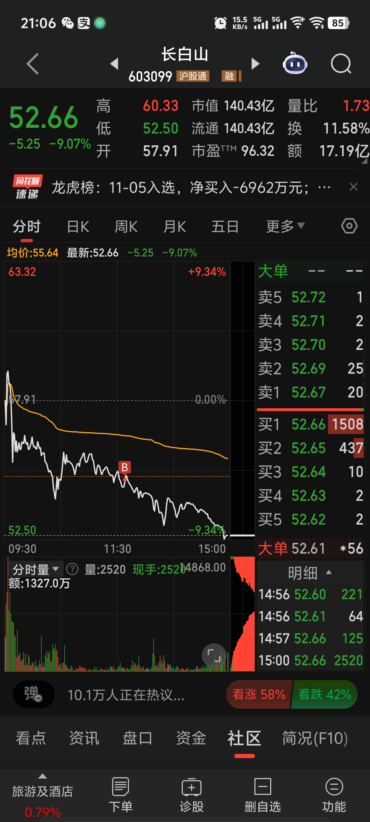 $长白山(SH603099)$ 唉,我能帮你的也就这么多了,半仓给了我一碗面#炒股日记# 。另一半在晶雪