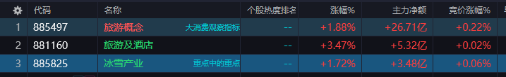 三个板块加起来十几个涨停板。非常热闹。其中旅游概念的个股多是大消费分支属性!