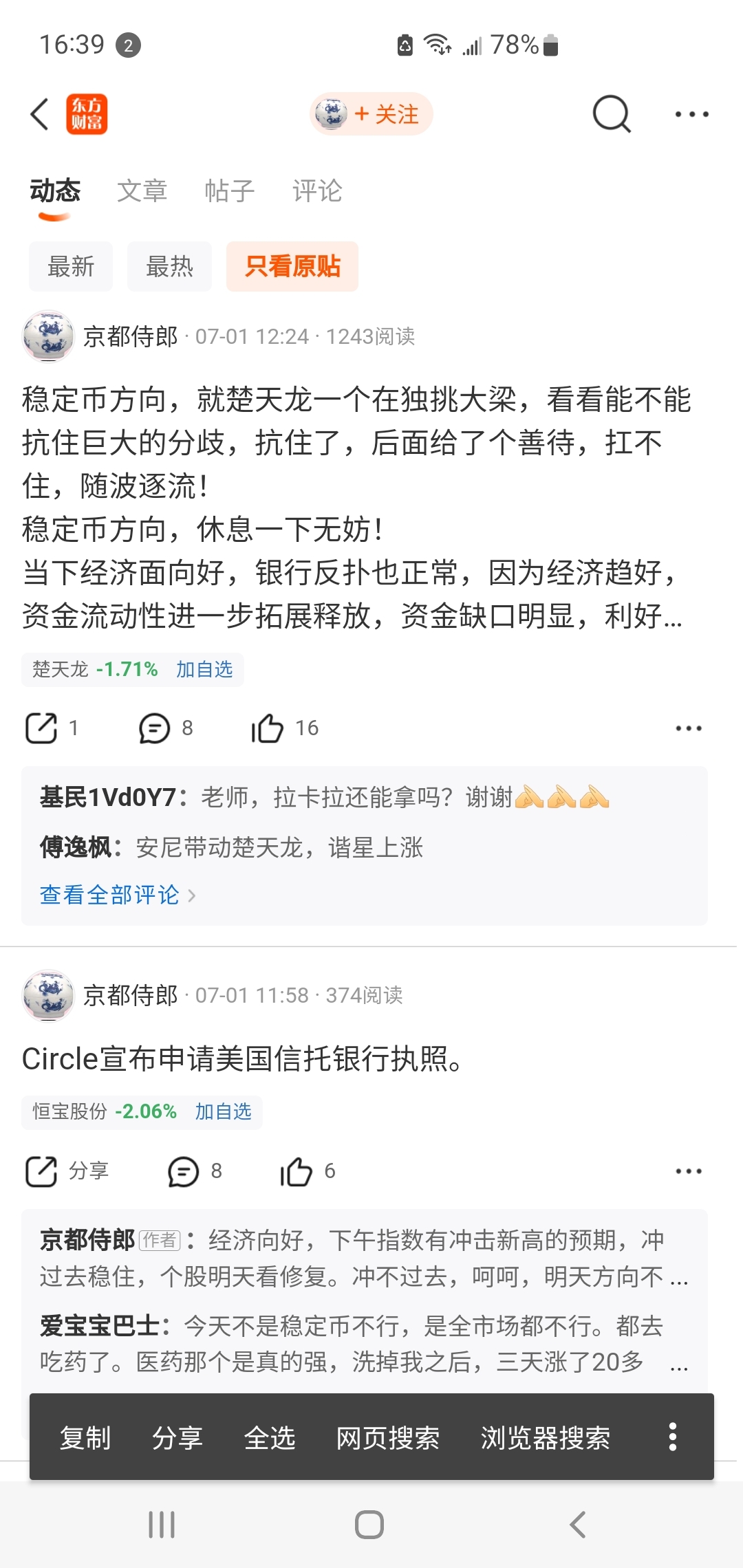温馨提示: 1.根据《证券法》规定,禁止编造、传播虚假信息或者误导性信息,扰乱证券市场;2.用户在本社区发表的所有资料、言论等仅代表个人观点,与本网站立场无关,不对您构成任何投资建议。用户应基于自己的独立判断,自行决定证券投资并承担相应风险。《东方财富社区管理规定》