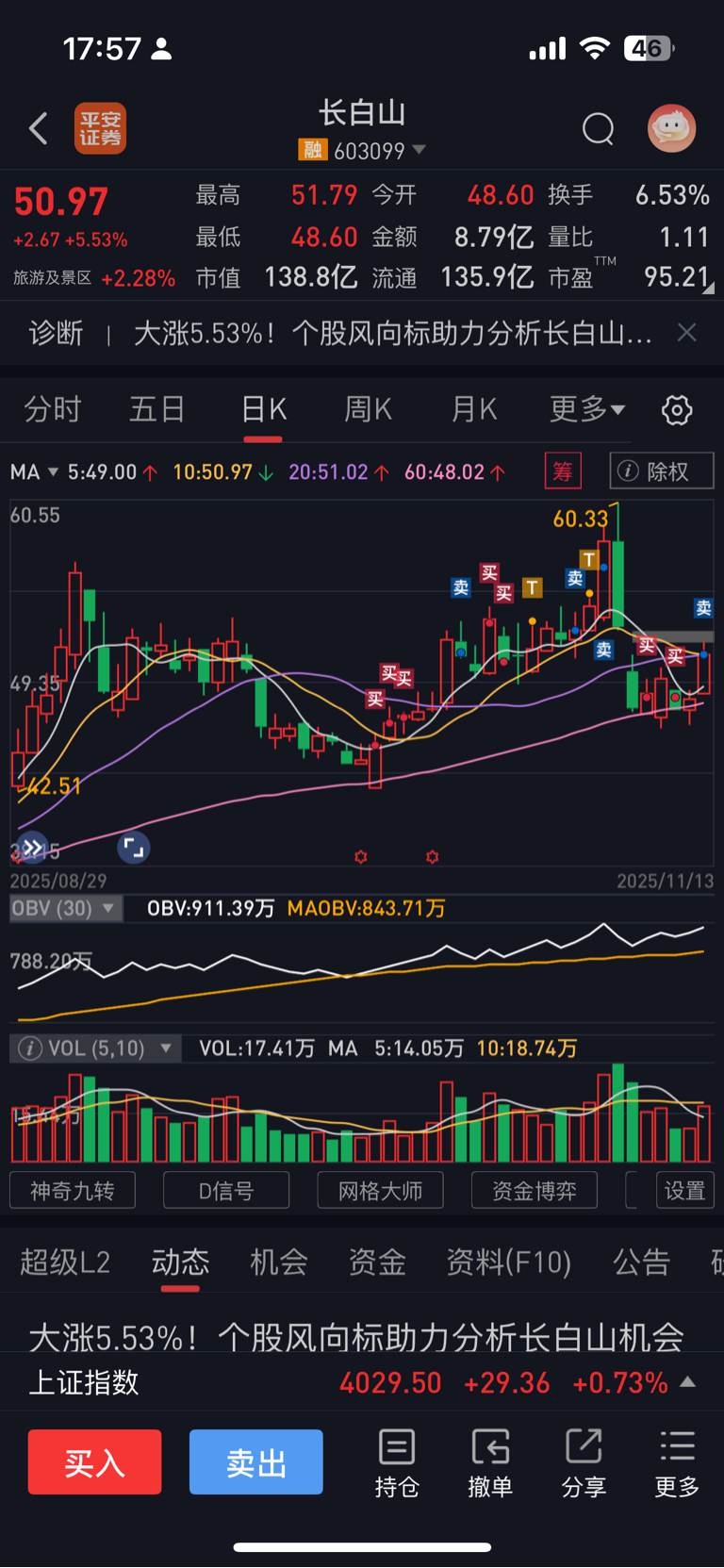 $长白山(SH603099)$ 4号清仓,今天又清了。但愿下周给我接回的机会