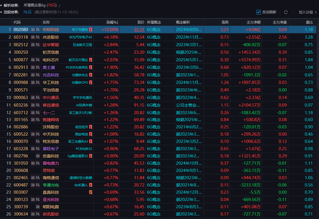 明天6g概念起爆!刚才新闻联播已经播报了。这个是通信科技的领先!