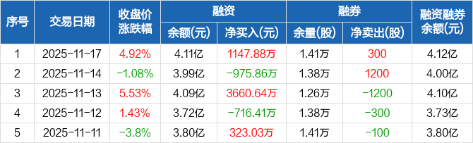 长白山:融资净买入1147.88万元,融资余额4.11亿元(11-17)