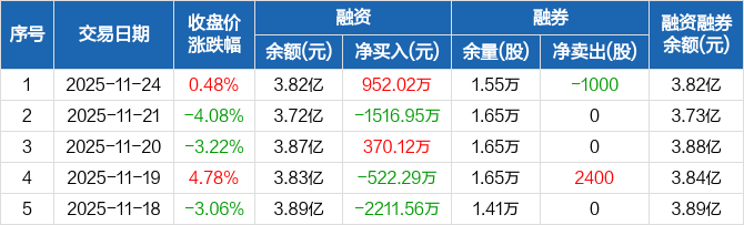 长白山:融资净买入952.02万元,融资余额3.82亿元(11-24)