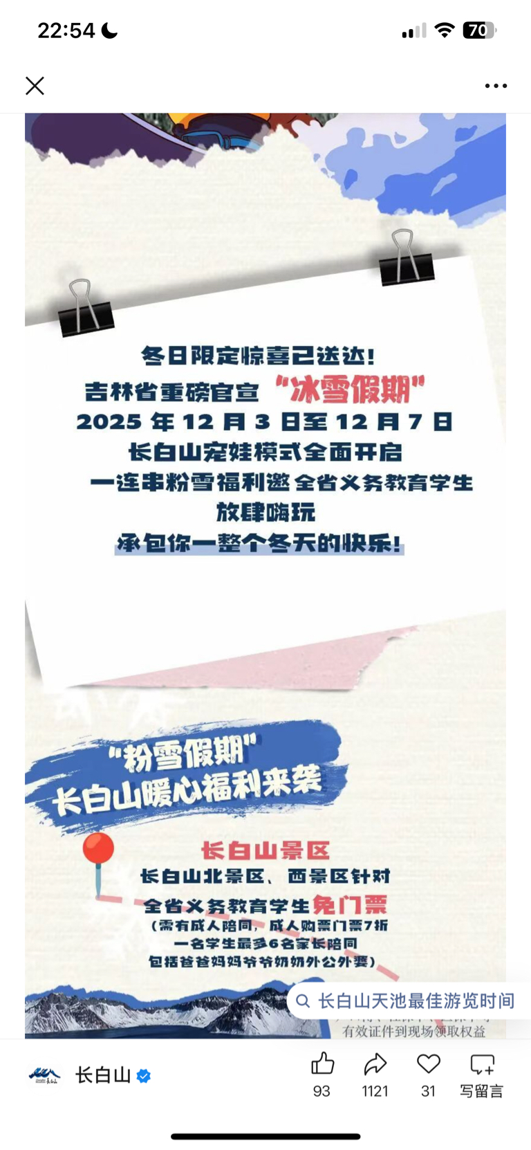 $长白山(SH603099)$ 我想问问我儿子上幼儿园能不能免门票