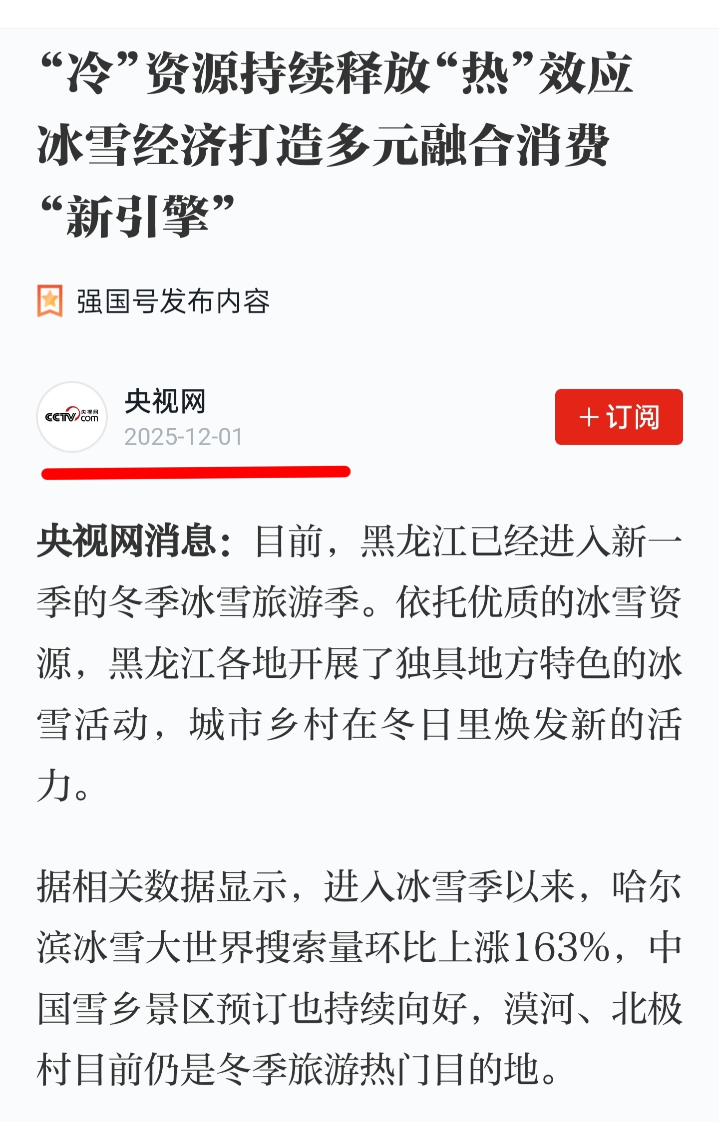 $长白山(SH603099)$ 央视网关注冰雪经济热潮的最新动态……