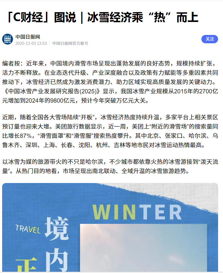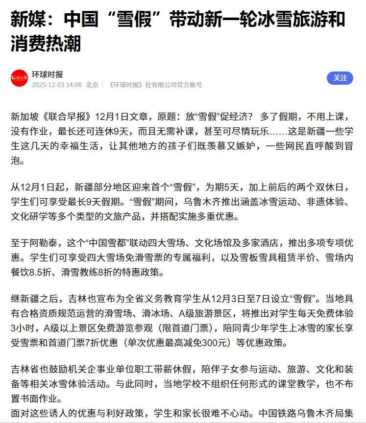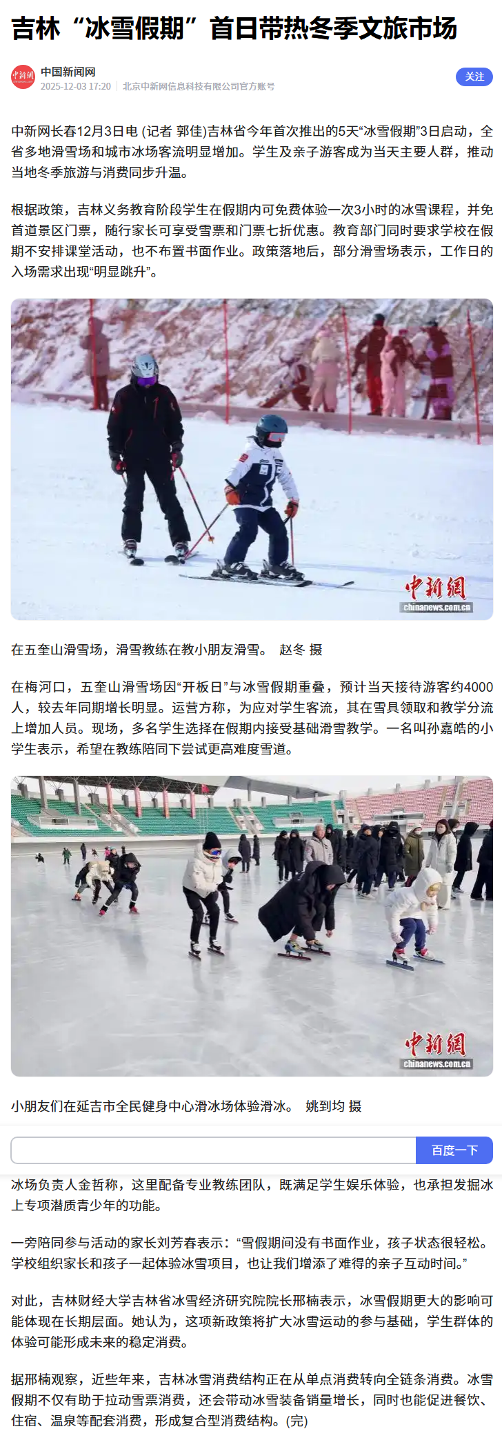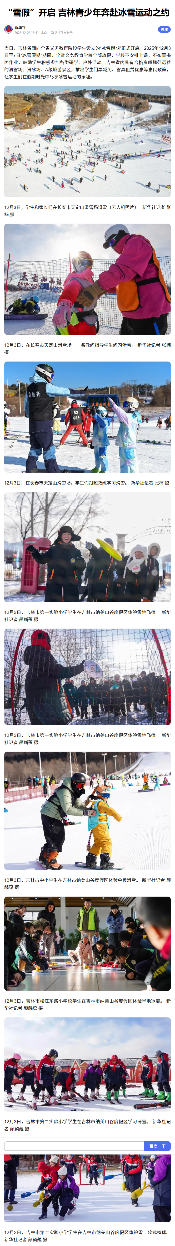 新华社:“雪假”开启吉林青少年奔赴冰雪运动之约
