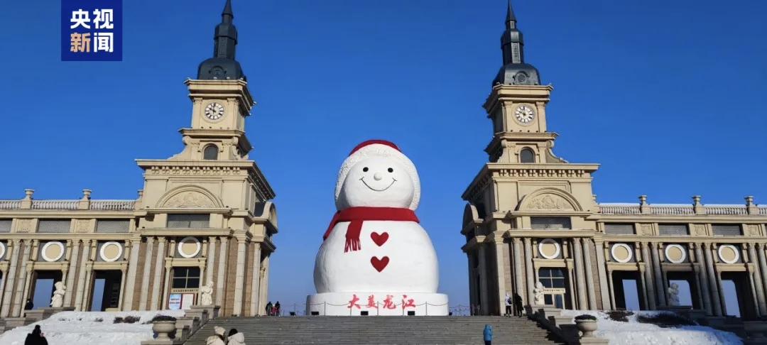 黑龙江哈尔滨道里区音乐公园正式开启“大雪人”人工造雪施工,今年将继续以标志性红帽