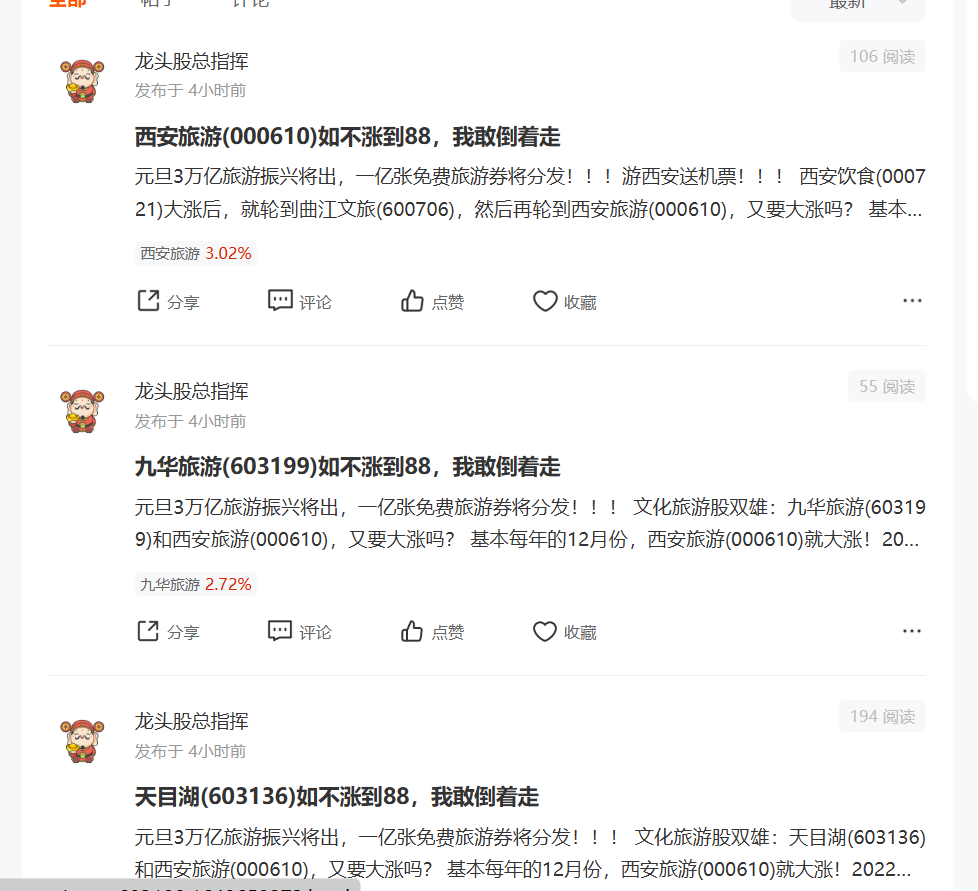 偶然在另一支已购股票做复盘的时候看到的,这个人只是把股票名字改一下,内容一摸一样,不是蠢就是坏,各位这段时间一起奋斗的股友注意避坑。