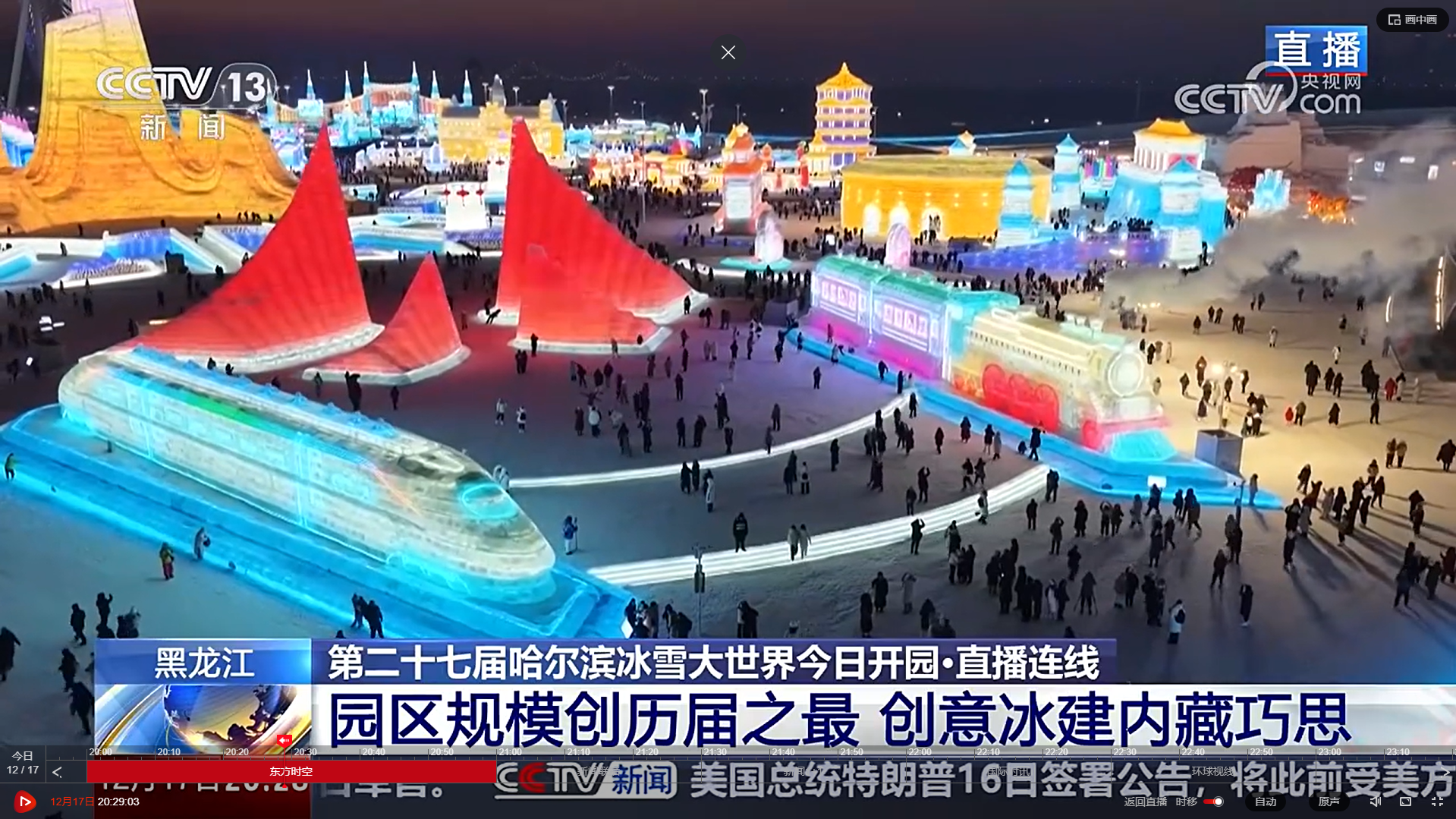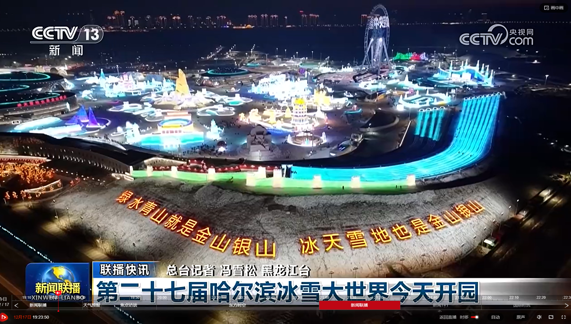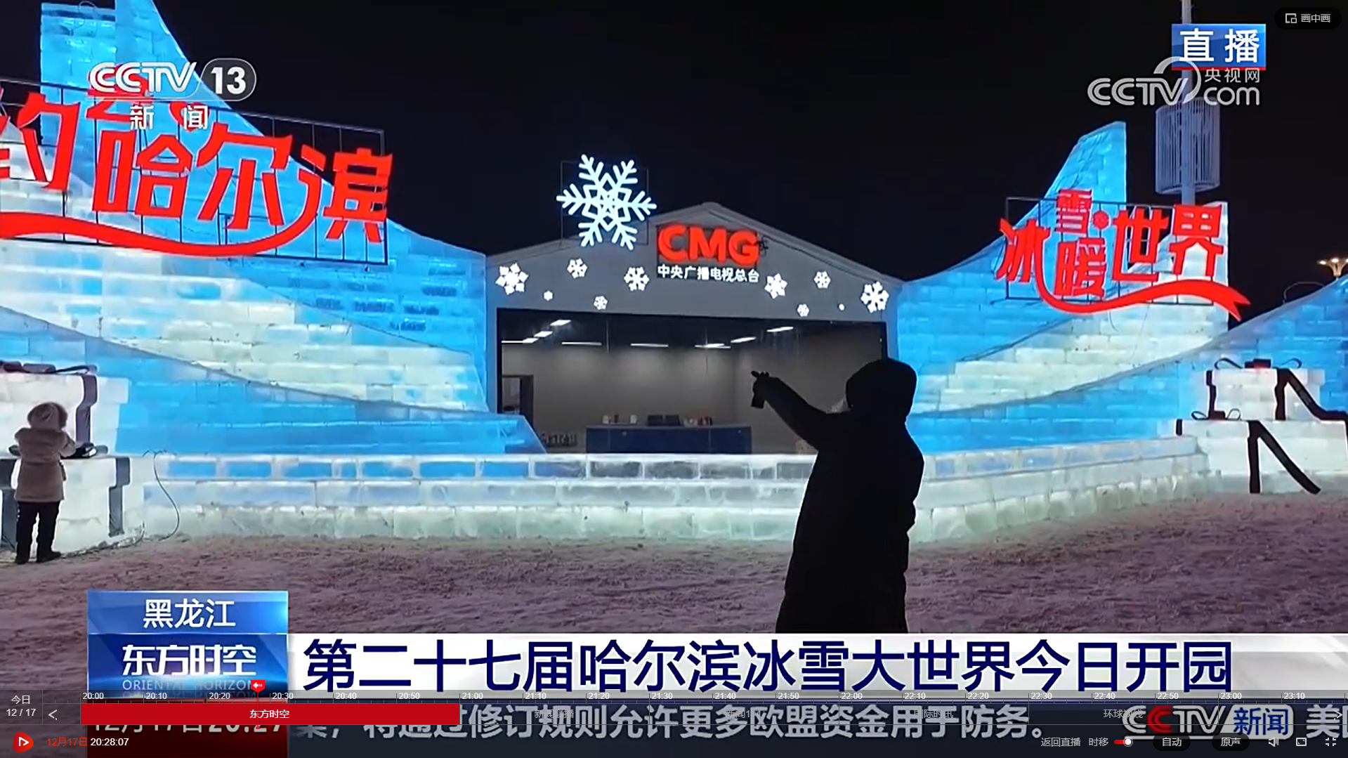 17日央视新闻联播、东方时空报道哈尔滨冰雪大世界开园!
