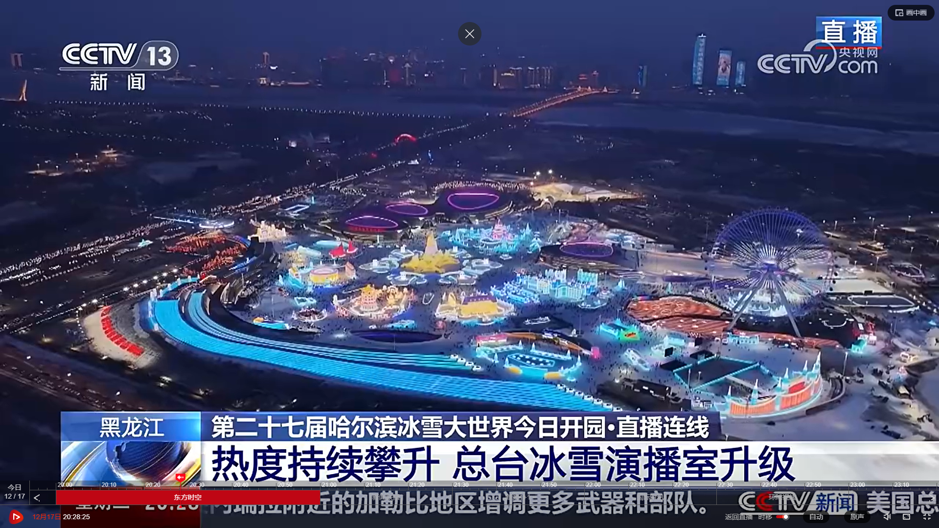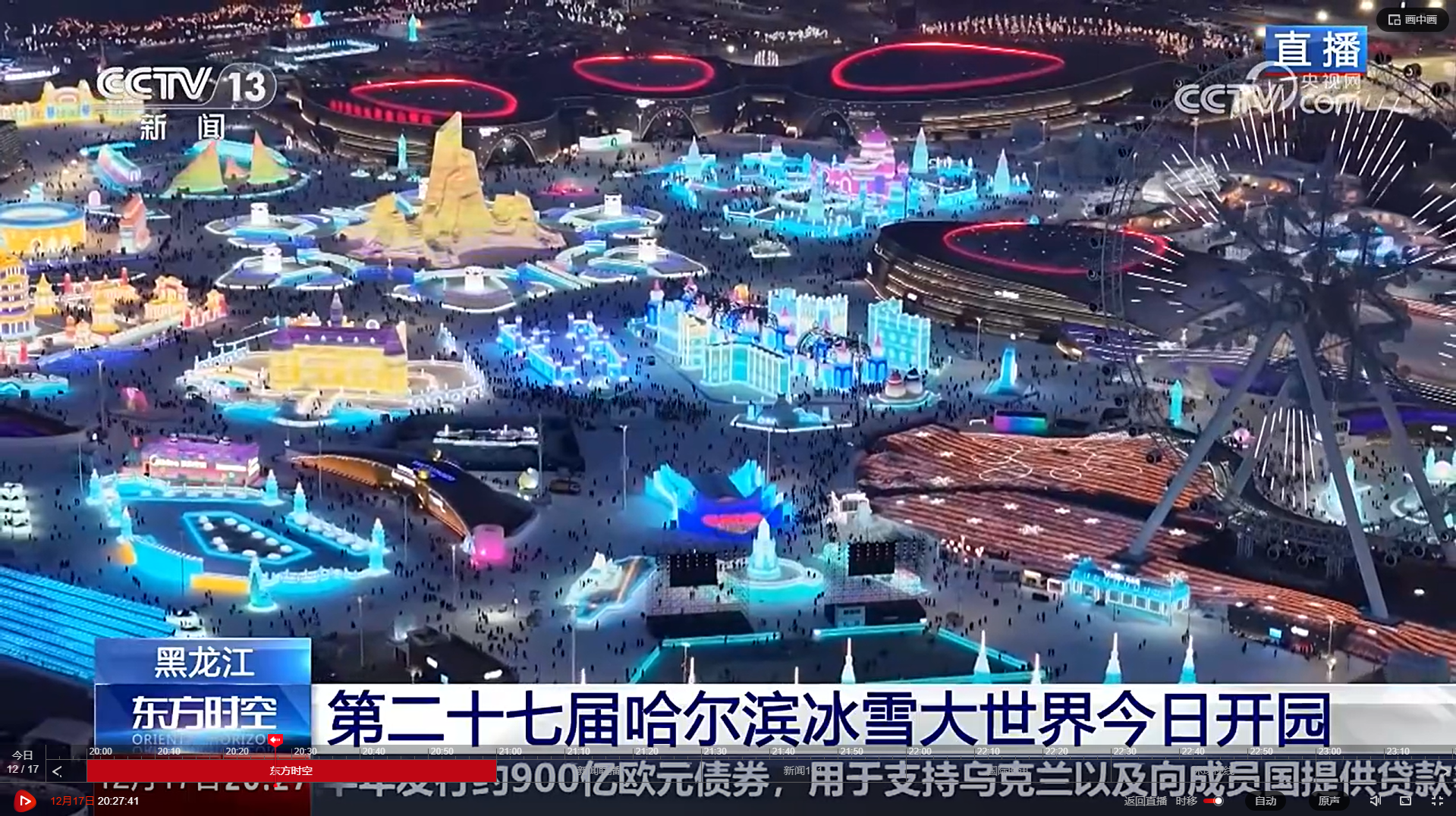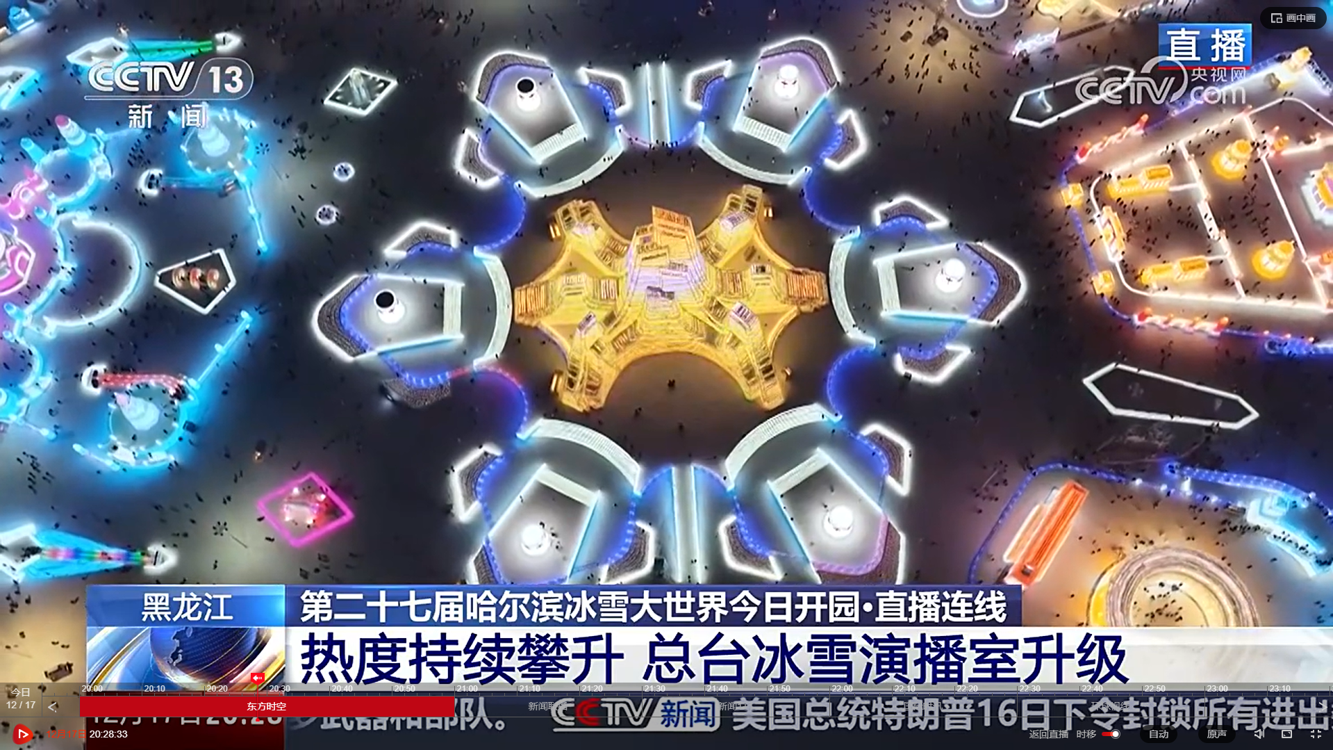 17日央视新闻联播、东方时空报道哈尔滨冰雪大世界开园!