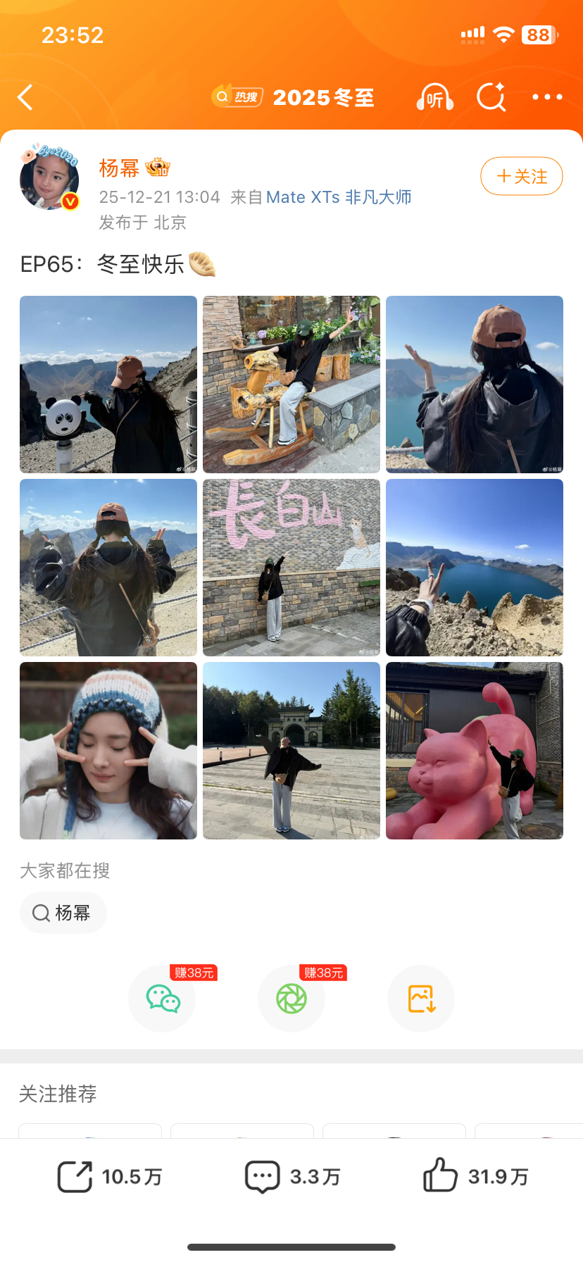 $长白山(SH603099)$ 杨幂也来长白山了,明天长白山能起飞一下吗?