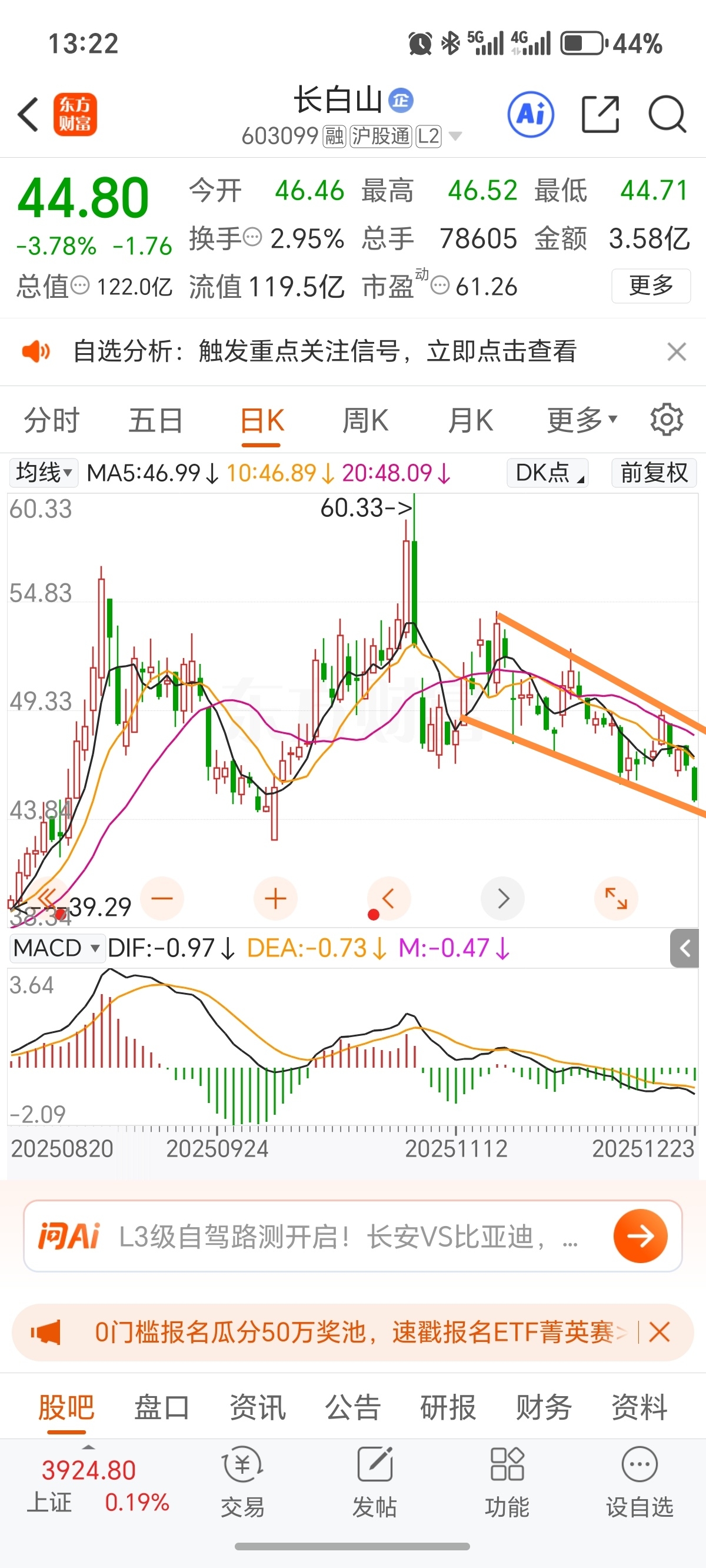 $长白山(SH603099)$ 下降通道已成型,诸位好运