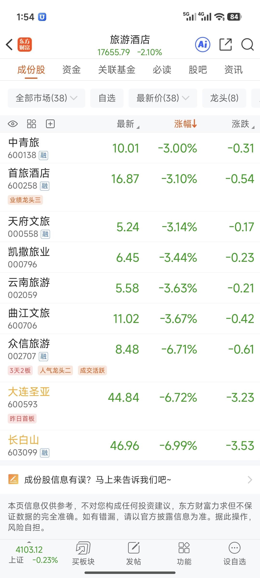 $长白山(SH603099)$ 板块倒数第一也是第一