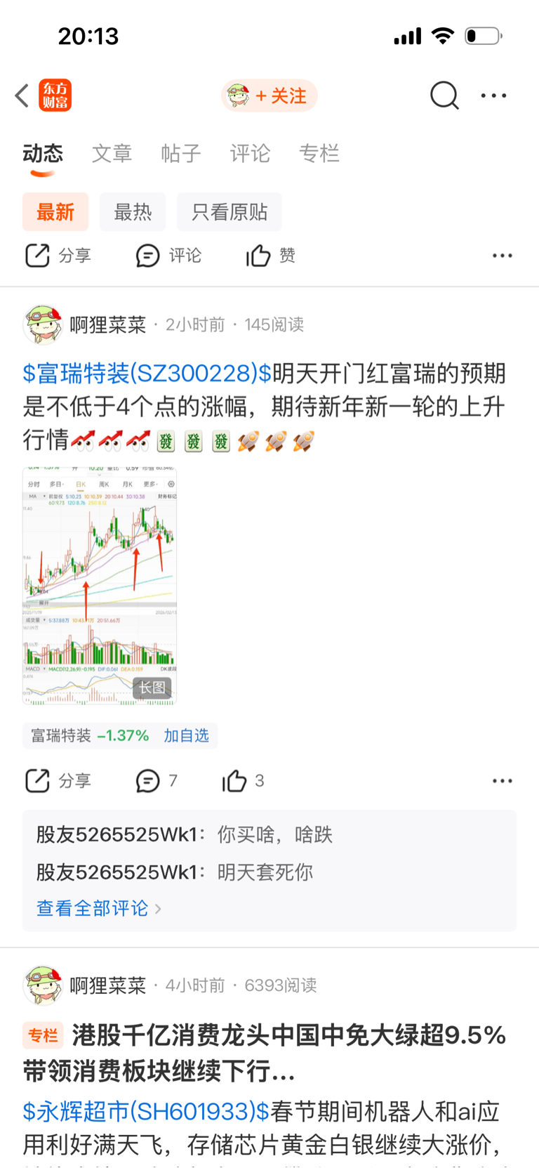 温馨提示: 1.根据《证券法》规定,禁止编造、传播虚假信息或者误导性信息,扰乱证券市场;2.用户在本社区发表的所有资料、言论等仅代表个人观点,与本网站立场无关,不对您构成任何投资建议。用户应基于自己的独立判断,自行决定证券投资并承担相应风险。《东方财富社区管理规定》