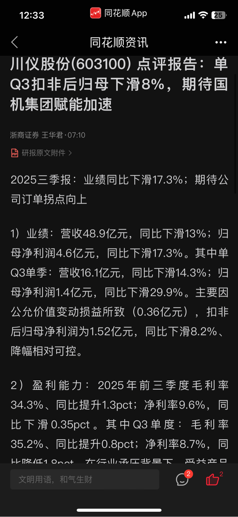 $川仪股份(SH603100)$ 就是两个银行股价下跌影响3600万,但是扣非利润才下降8%,合同负债环比涨13%。四季度订单大增,第四季度肯定下降窄幅缩小,