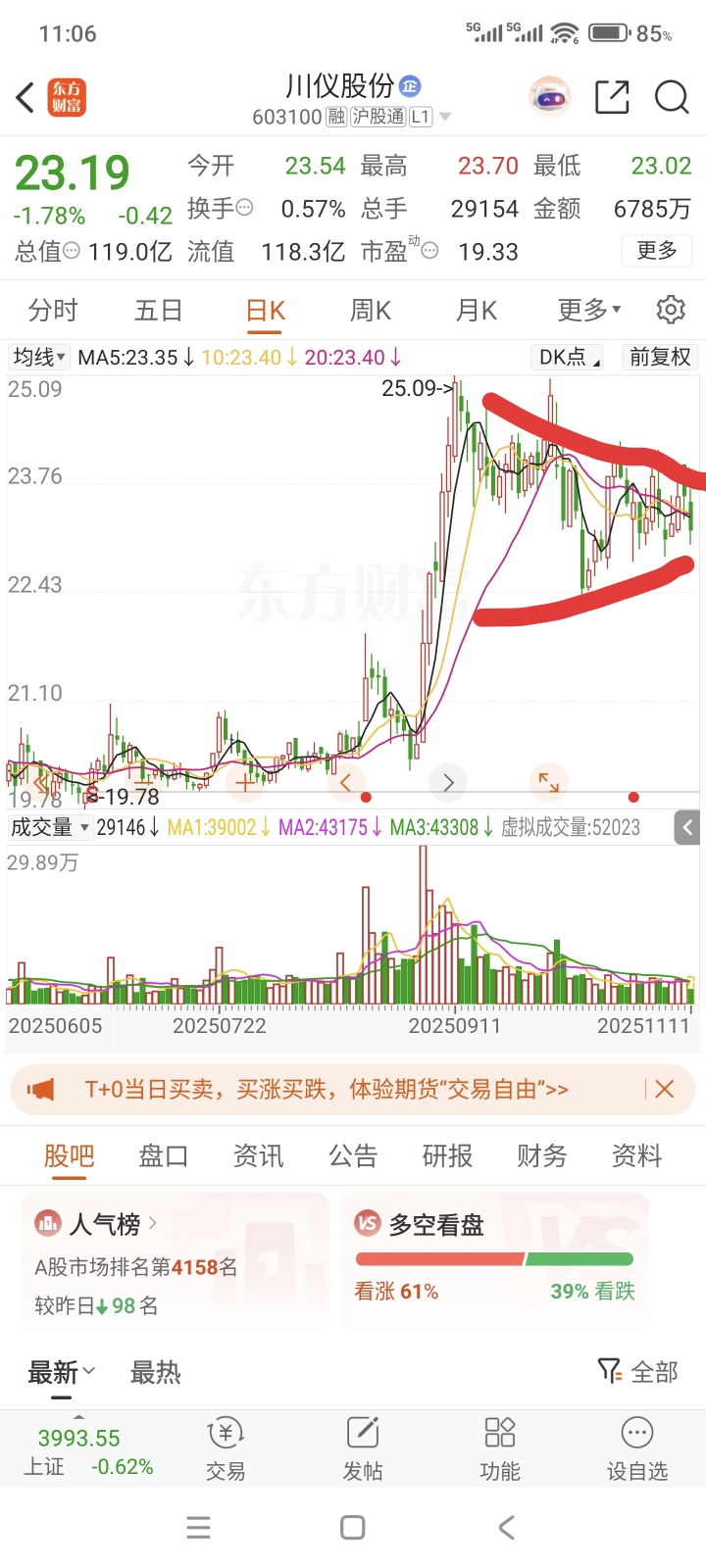 $川仪股份(SH603100)$ 均线一直下移,反弹不过前期新高,除非放量不然趋势难好