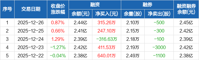 川仪股份:融资净买入315.26万元,融资余额2.44亿元(12-26)