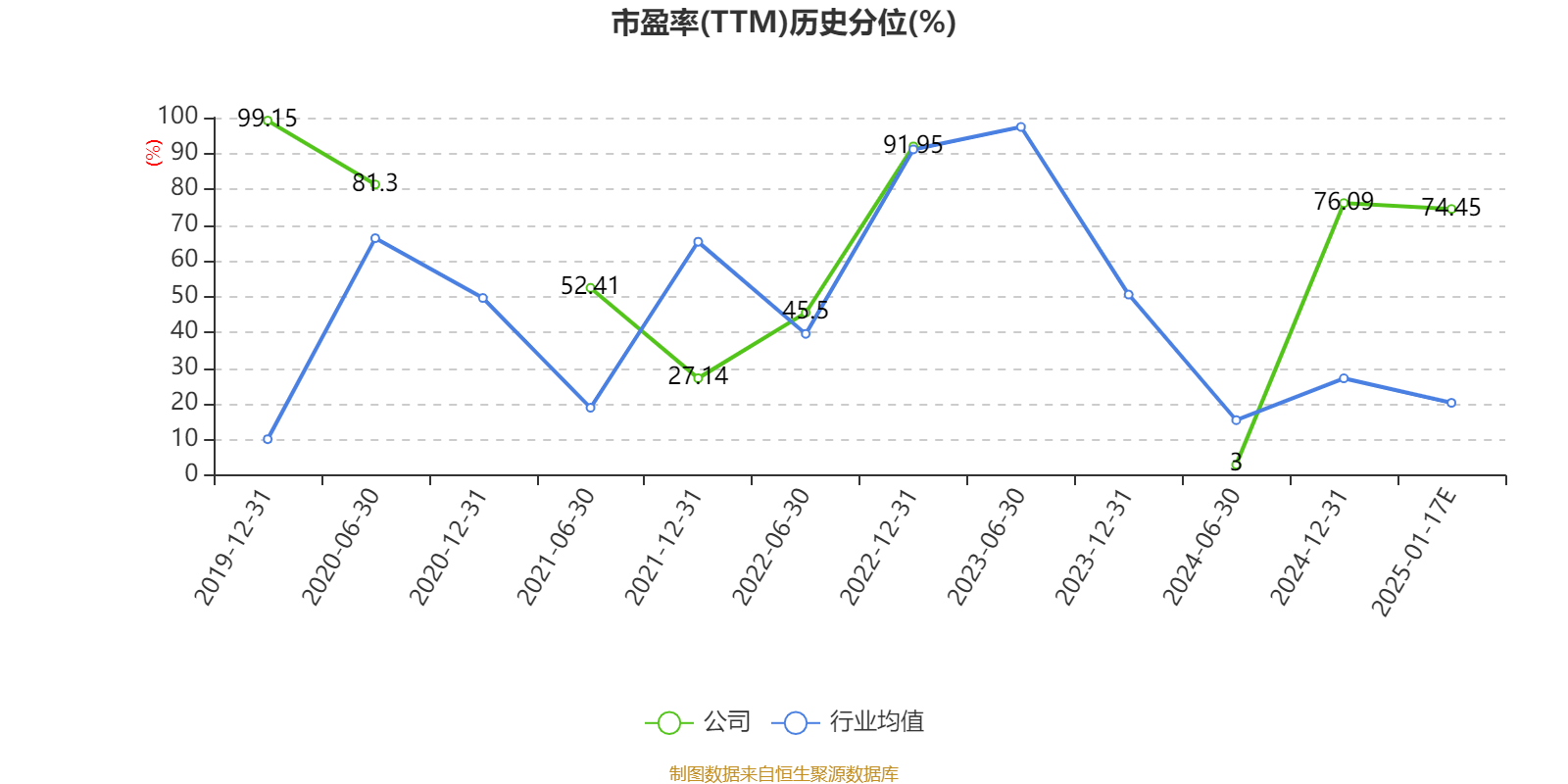 以本次披露业绩预告均值计算,公司近年市盈率(TTM)图如下所示: