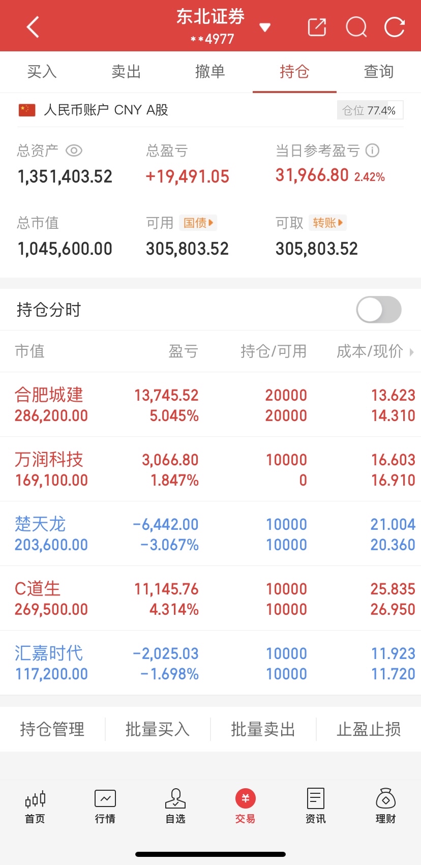 $汇嘉时代(SH603101)$ 趋势很不错,缩量下跌。后期还是看涨的。所以没必要不乐观。拿好就行,今天依旧是低吸的机会。$C道生(SH601026)$ 我一直觉得道生会有个临停,昨天哪怕跌了12个点,我都没走。因为想把这五天过去,想知道关于新股我的逻辑会不会对。$合肥城建(SZ002208)$ 昨天合肥点火的时候冲进去了一下,本来以为凉了,没想到走了个反包。尾盘没补仓,今天看封单情况了。