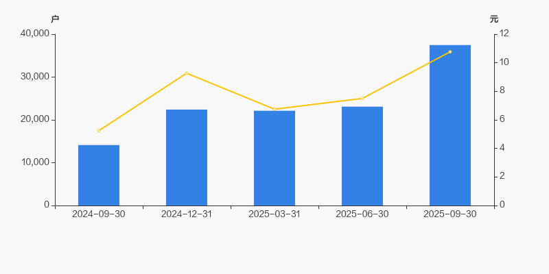 2024年9月30日至今,公司股东户数成倍增长,区间涨幅达165.40%。2024年9月30日至2025年9月30日区间股价上涨105.38%。