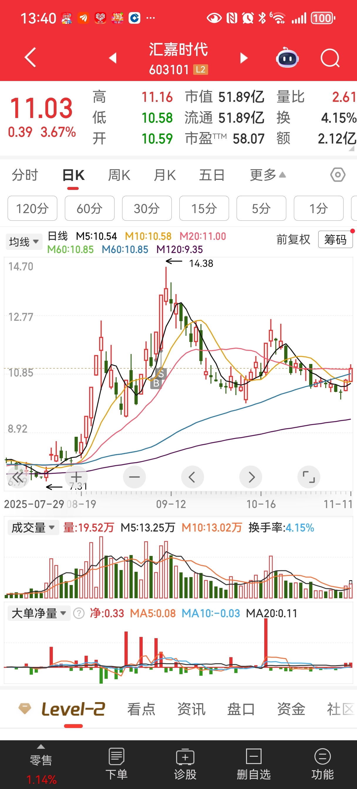 $汇嘉时代(SH603101)$ 汇嘉时代可以买进了,股性好业绩佳,回调充分,关键这两天资金回流消费,现价买进,吃个15%到25%没有问题