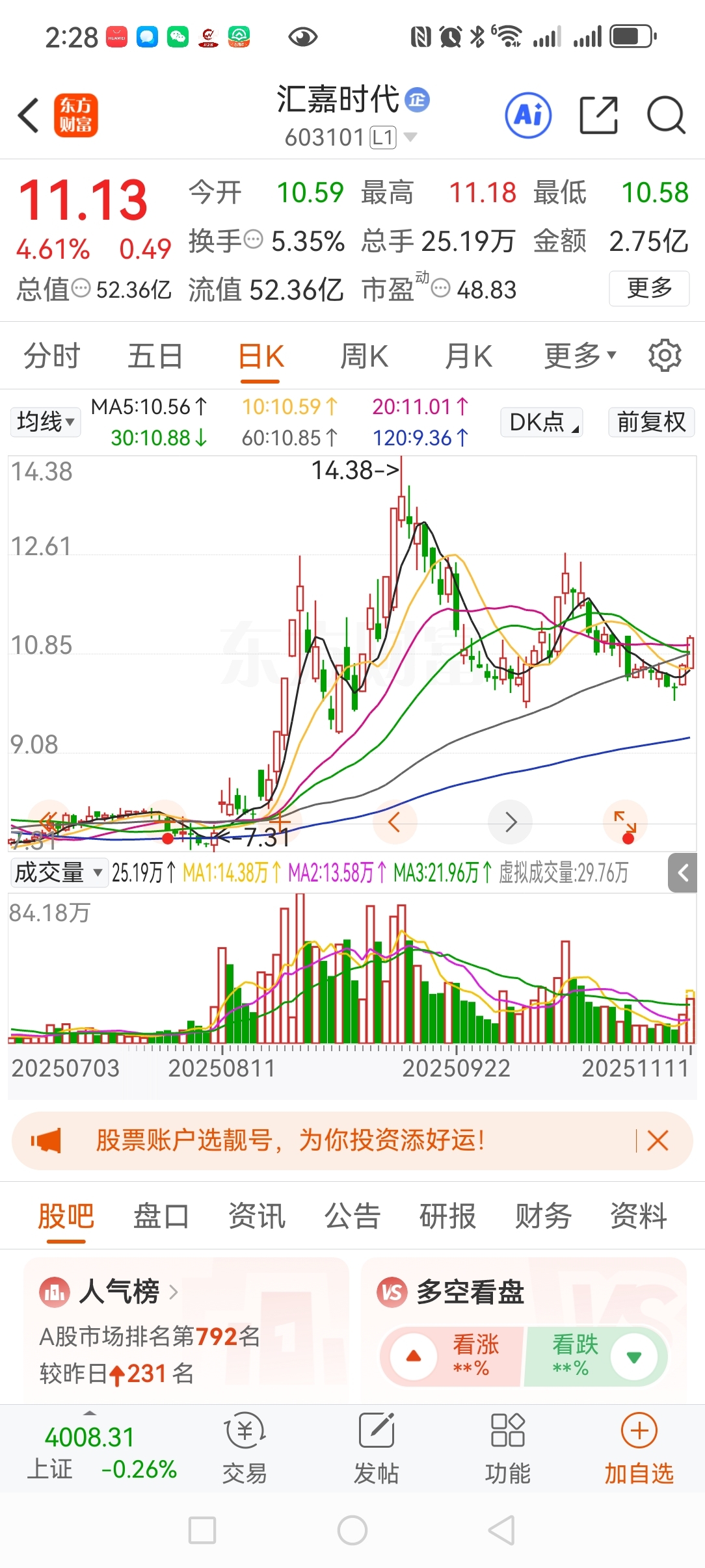 $汇嘉时代(SH603101)$ 这么大一个W底,这才开始启动,算一下理论目标价就是15元,所以我说拿到15元,老乡们。