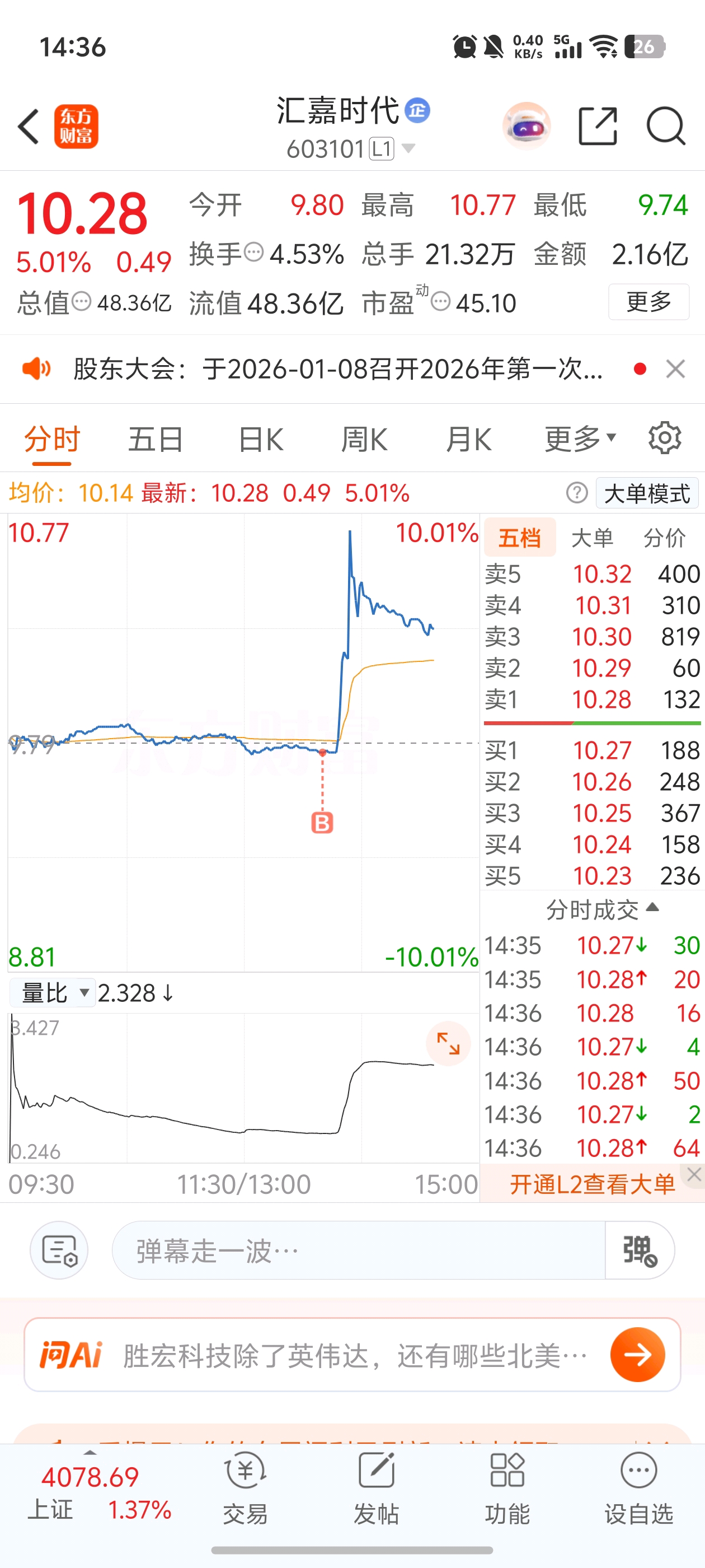 $汇嘉时代(SH603101)$ 逮住了