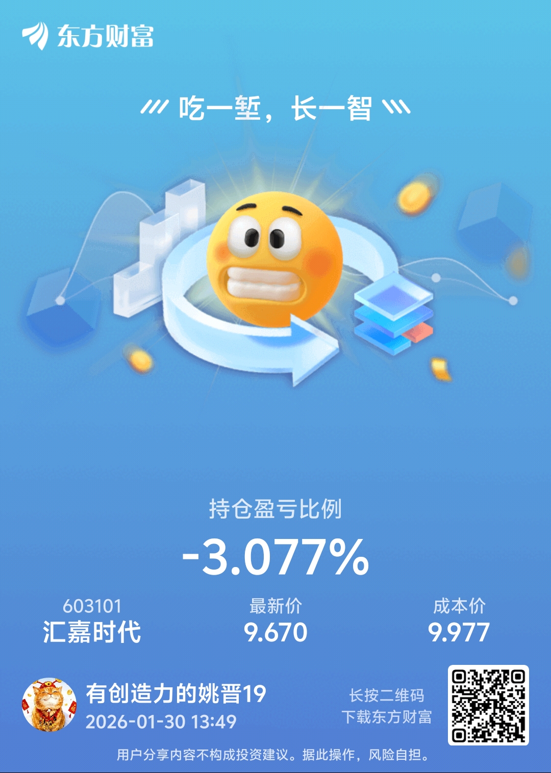 温馨提示: 1.根据《证券法》规定,禁止编造、传播虚假信息或者误导性信息,扰乱证券市场;2.用户在本社区发表的所有资料、言论等仅代表个人观点,与本网站立场无关,不对您构成任何投资建议。用户应基于自己的独立判断,自行决定证券投资并承担相应风险。《东方财富社区管理规定》