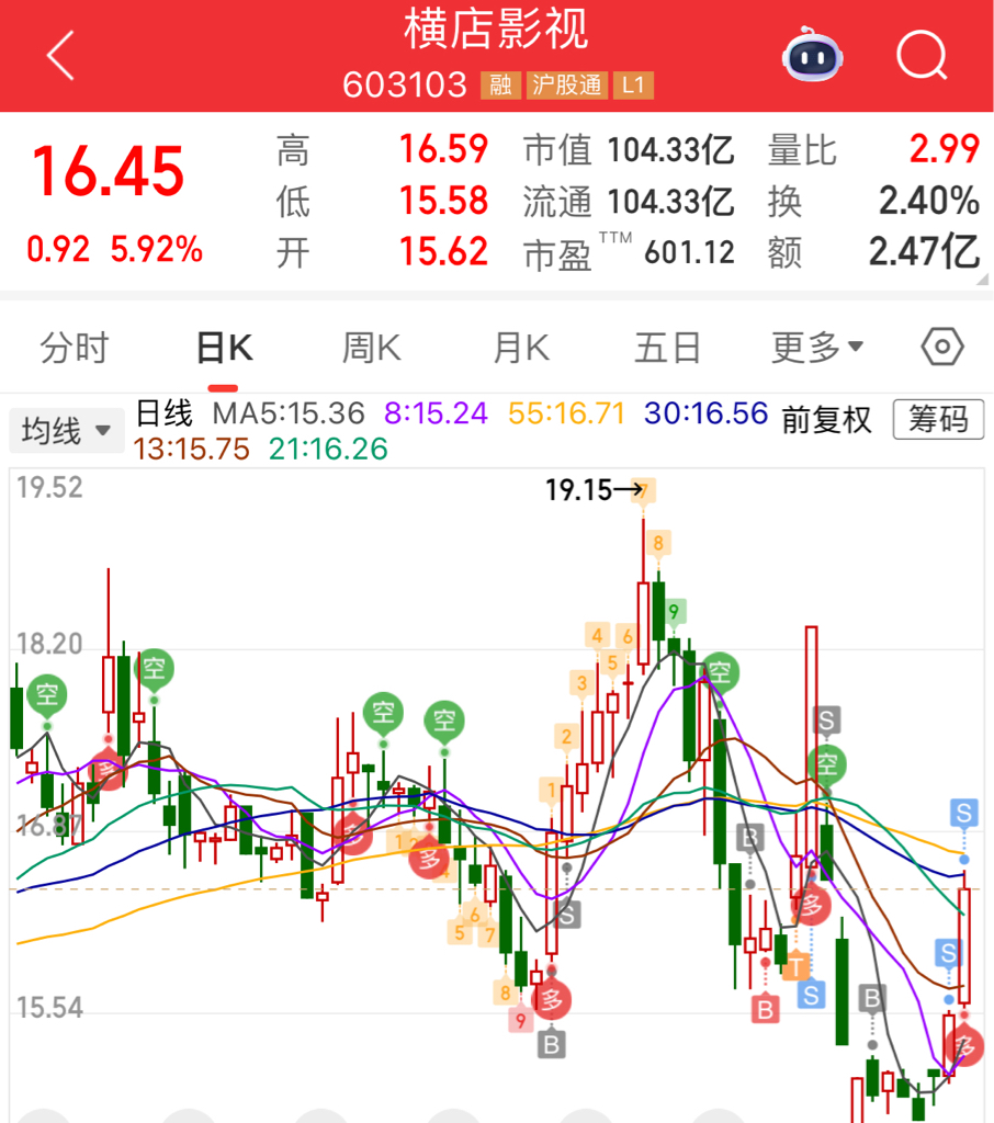 $横店影视(SH603103)$ 我先撤退,15附近继续