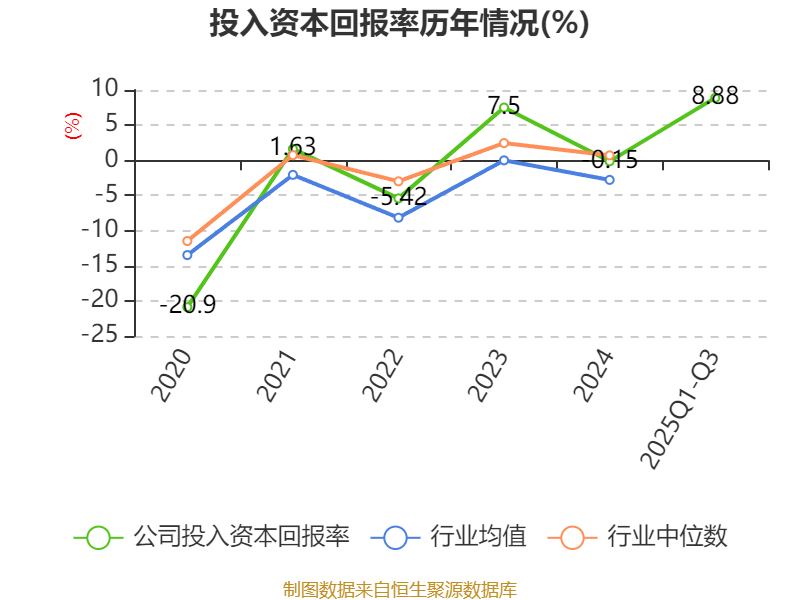 盈利能力方面, 2025年前三季度公司加权平均净资产收益率为16.21%,同比上升14.92个百分点。公司2025年前三季度投入资本回报率为8.88%,较上年同期上升7.16个百分点。