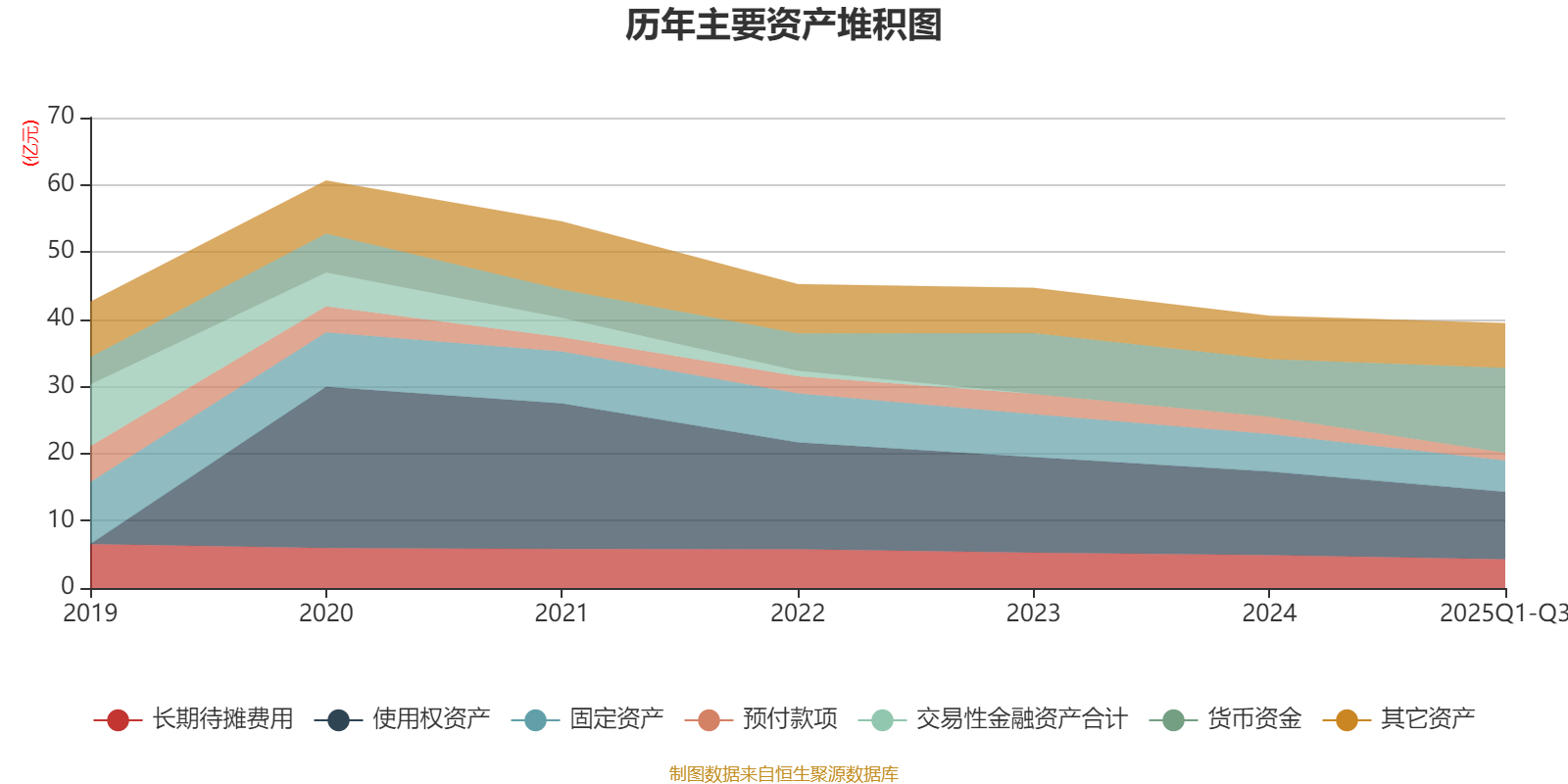 资产重大变化方面,截至2025年三季度末,公司货币资金较上年末增加47.17%,占公司总资产比重上升10.83个百分点;使用权资产较上年末减少19.39%,占公司总资产比重下降5.26个百分点;预付款项较上年末减少54.35%,占公司总资产比重下降3.4个百分点;固定资产较上年末减少16.64%,占公司总资产比重下降1.97个百分点。
