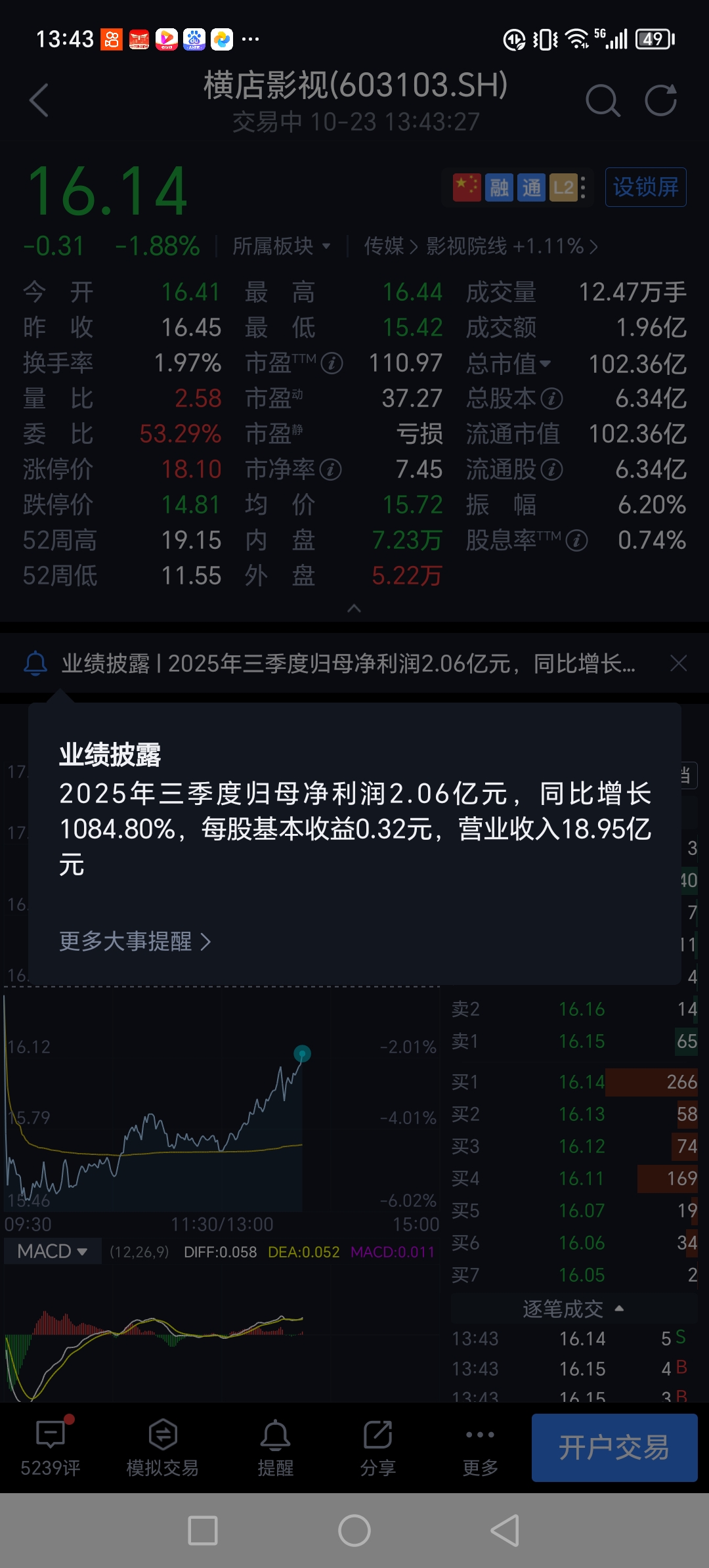 (期待股价上30元)横店影视:2025年前三季度净利润同比增长1084.8%拟1