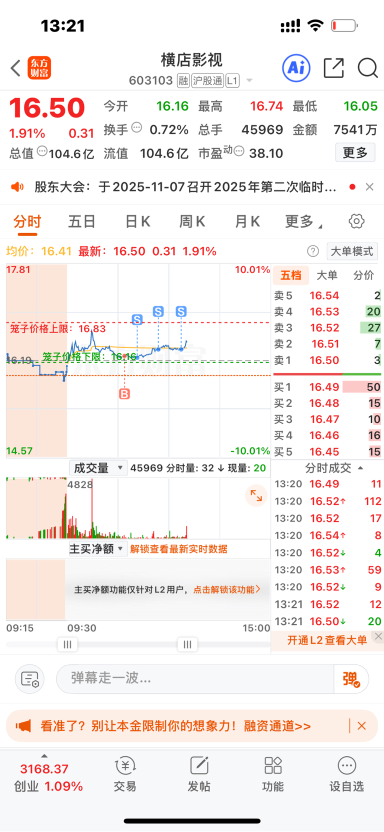 $横店影视(SH603103)$ 我卖一点它拉一下,我卖一点它拉一下,就多了我这颗韭菜呗