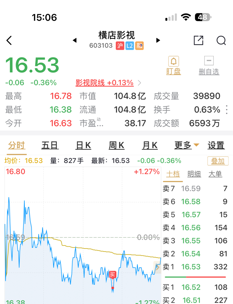 $横店影视(SH603103)$ 好股,前两天17卖的以为接不回来了