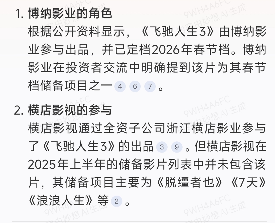 $横店影视(SH603103)$ 飞驰人生3根本不是出品方