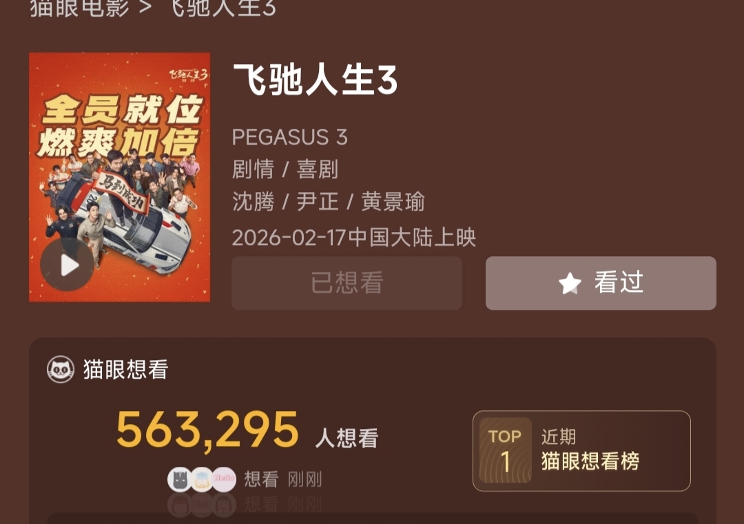 电影飞驰人生3,突破56万,明天还想涨停可以,大家继续点击呀并转发呀,猫眼搜飞驰