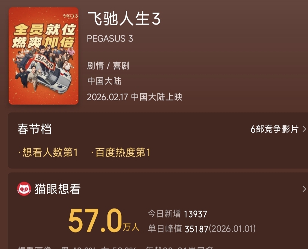 $横店影视(SH603103)$ 电影飞驰人生3破57万,主力给力今天涨停,明天想要继续涨停必须支持飞驰人生3大家继续点击并转发。人数不够明天拉不涨停