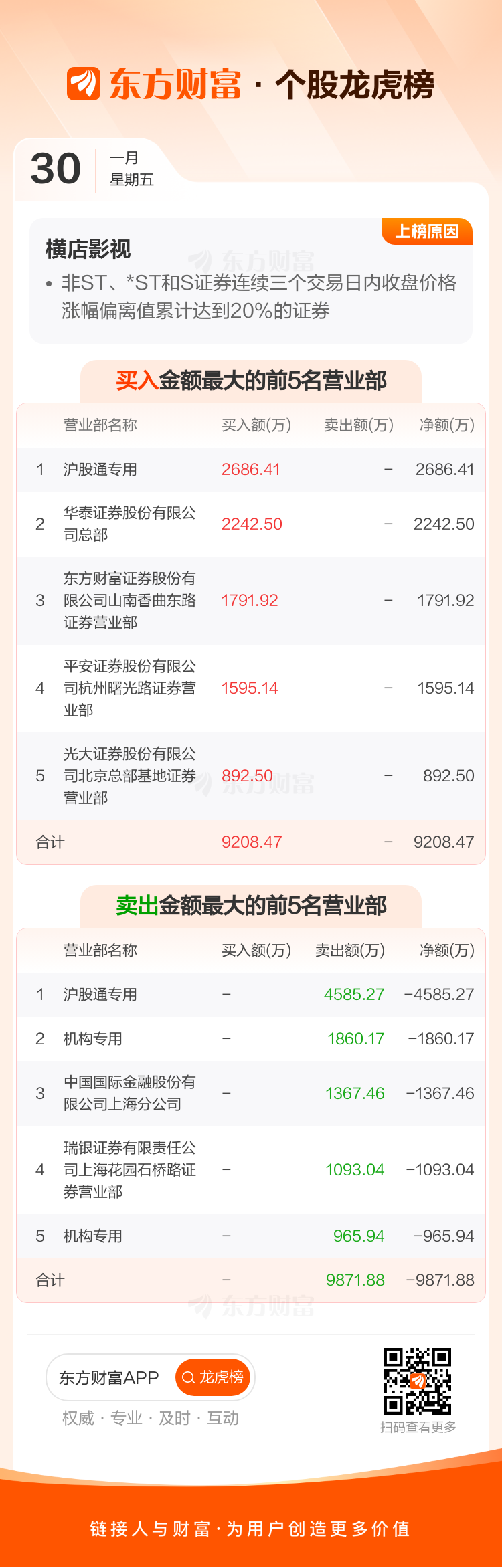 横店影视(603103)龙虎榜数据(01-30)