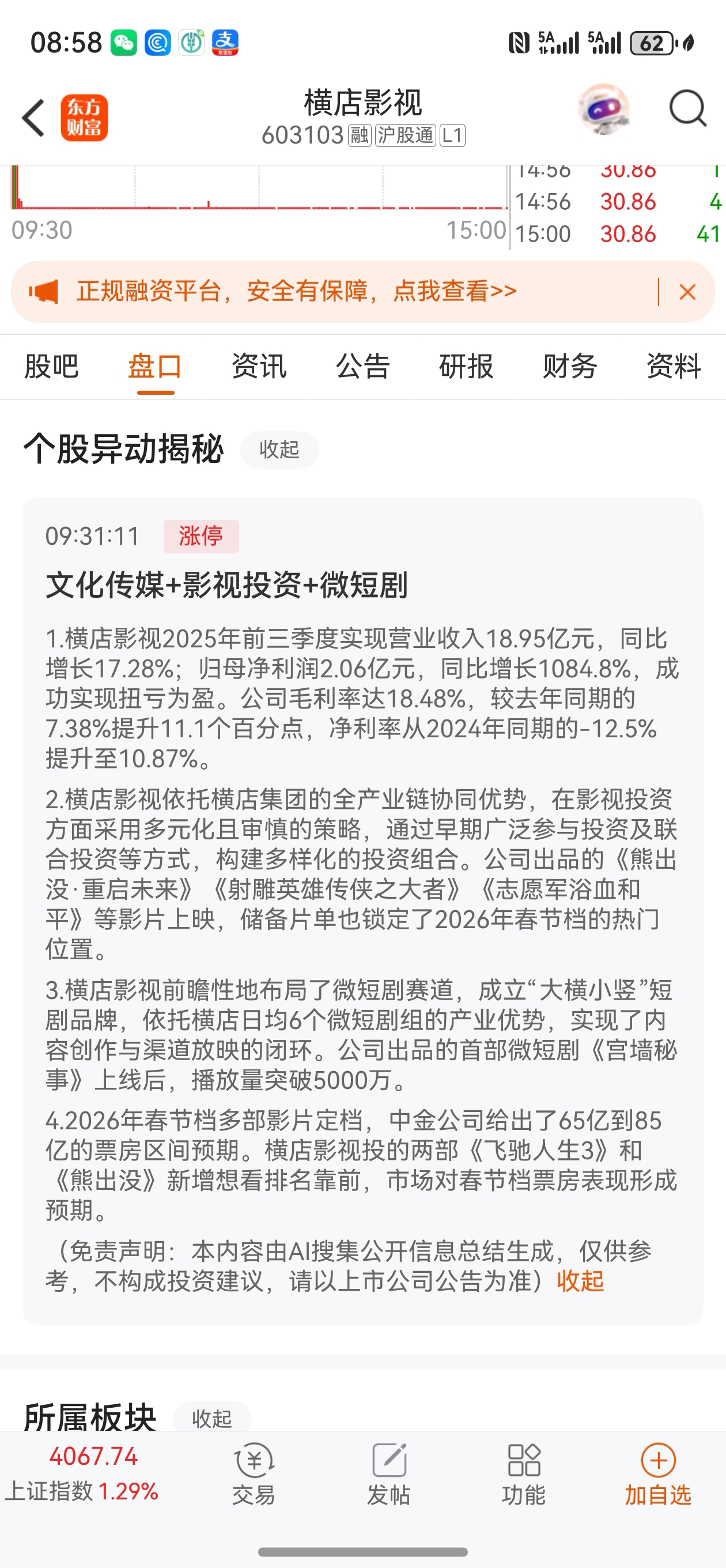 郑重声明:用户在财富号/股吧/博客等社区发表的所有信息(包括但不限于文字、视频、音频、数据及图表)仅代表个人观点,与本网站立场无关,不对您构成任何投资建议,据此操作风险自担。请勿相信代客理财、免费荐股和炒股培训等宣传内容,远离非法证券活动。请勿添加发言用户的手机号码、公众号、微博、微信及QQ等信息,谨防上当受骗!