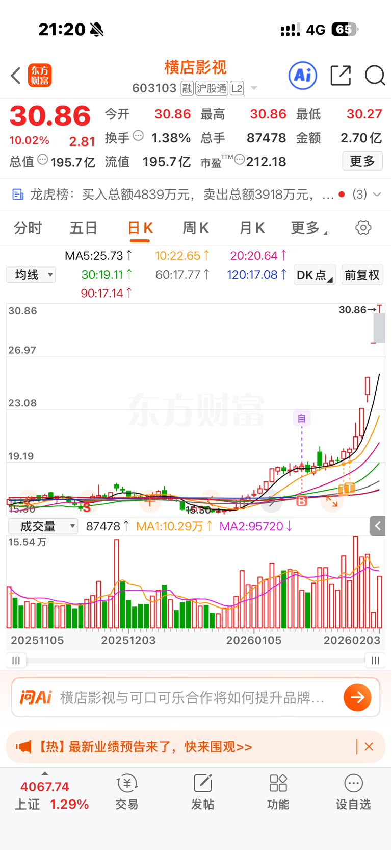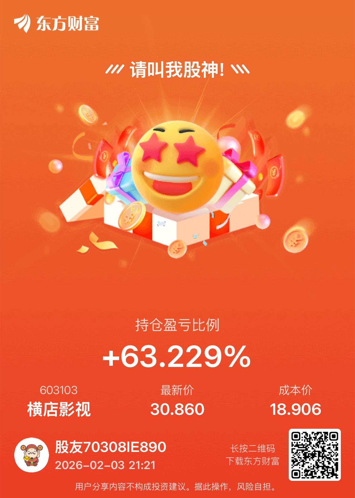 $横店影视(SH603103)$ 感谢主力