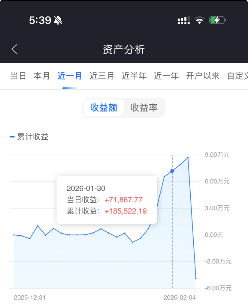 以为可以翻个倍过大年,早上差一毛没卖出去,赚九万多变亏4万多,清仓了只有49%利