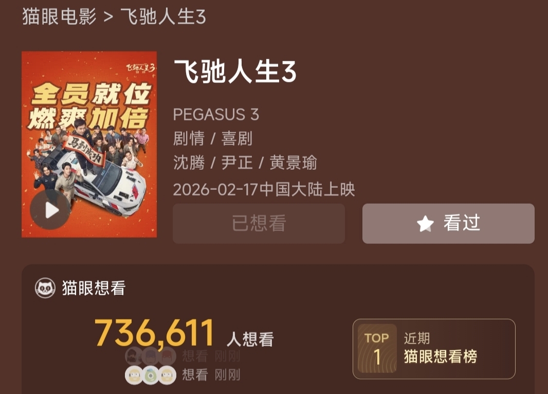 电影飞驰人生3马上破75万,主力继续涨停,大家继续点击呀并转发,大家给主力面子去