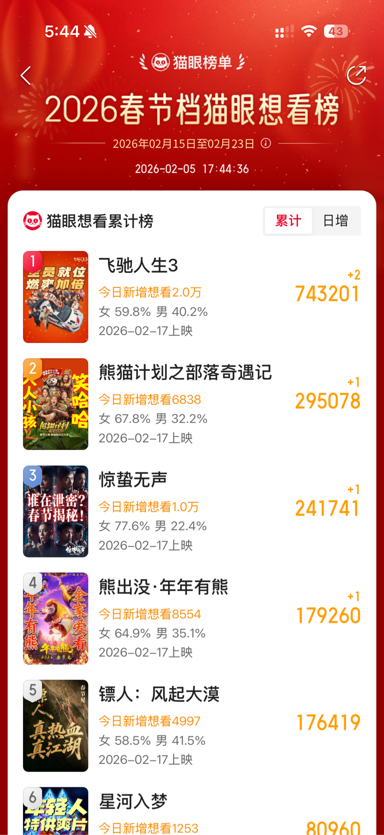 $横店影视(SH603103)$ 熊出没的累计想看数量超过了镖人