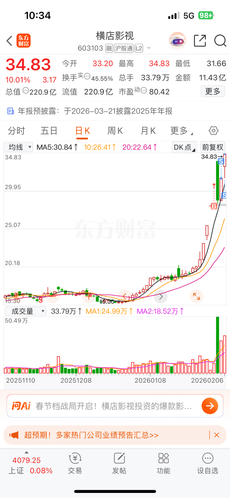 $横店影视(SH603103)$ 感谢主力不杀之恩