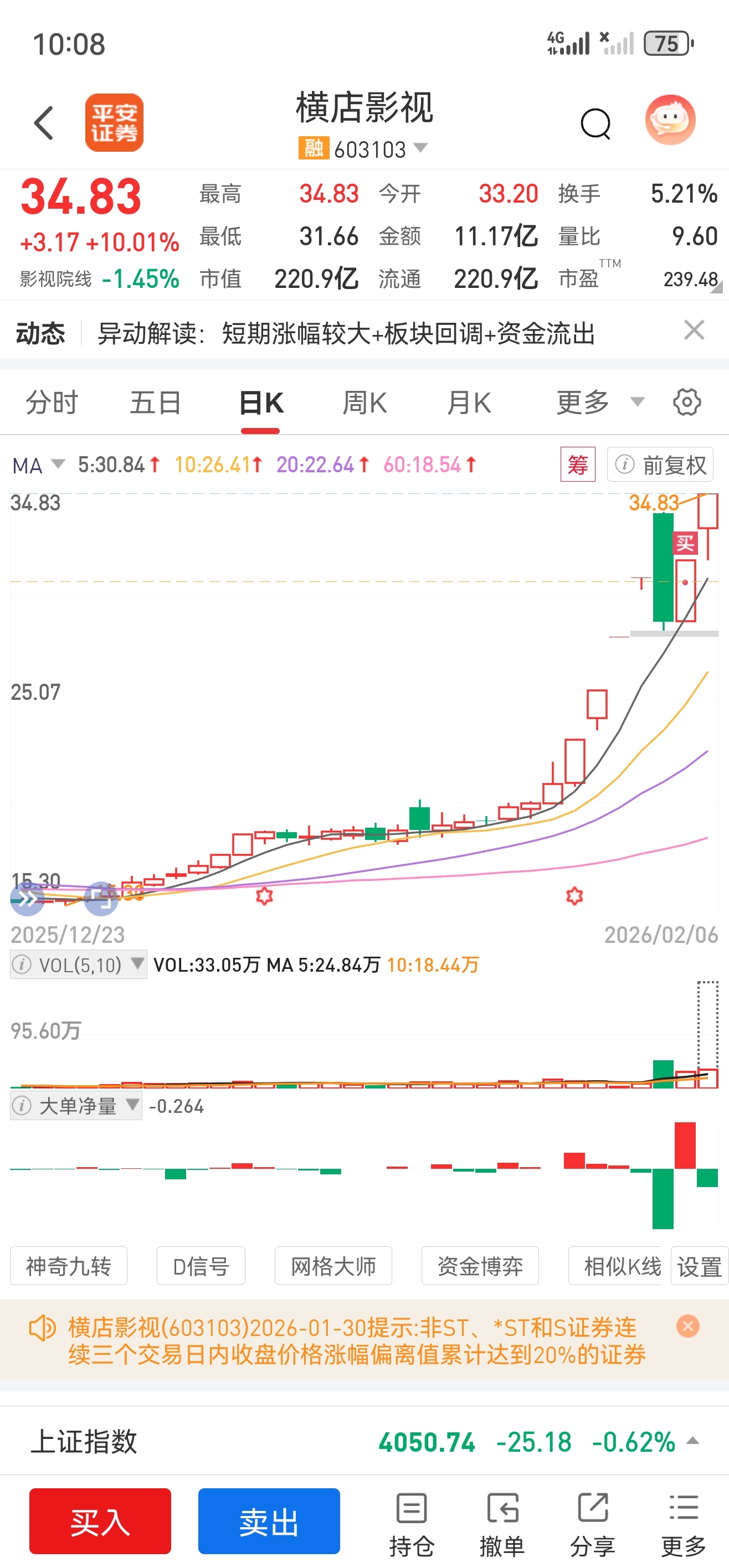 板上卖出横店,一是大单呈净流出状态,小单大量流入。二是封单量小,成交量较昨天明天